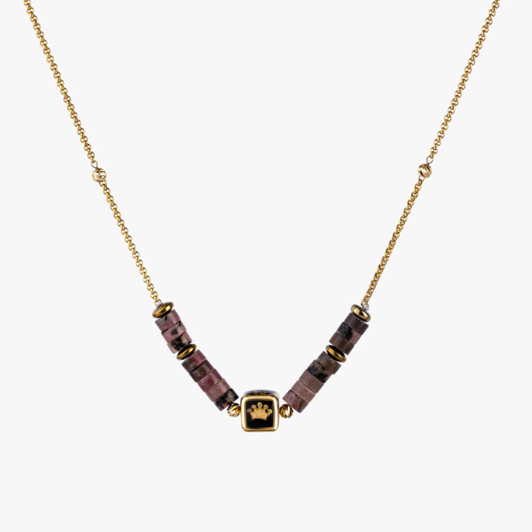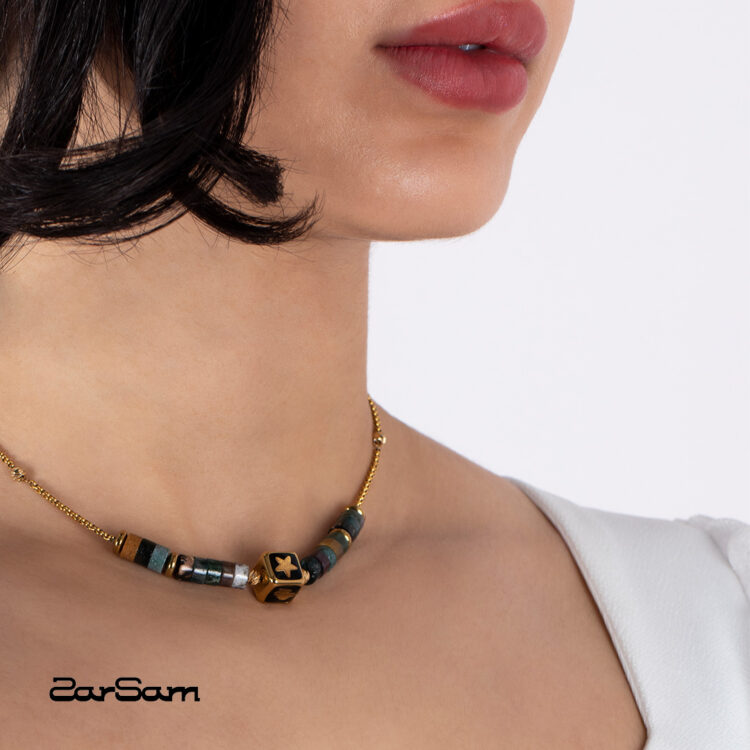 گردنبند زنانه ماهگون با ورق طلا و زنجیر سری آیلا