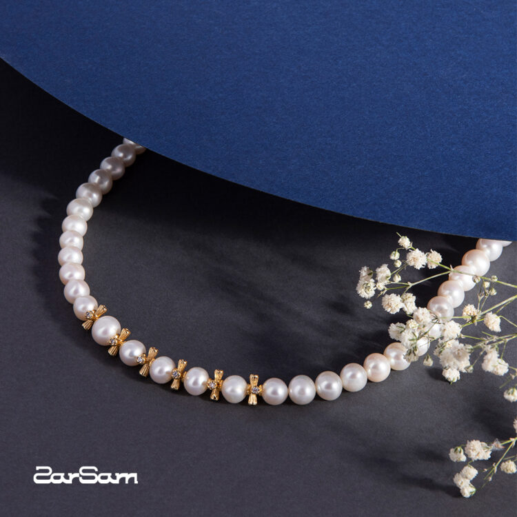 گردنبند مروارید زنانه نسترن با آبکاری طلا سری زروار