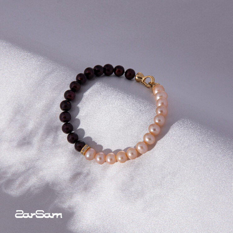 دستبند مروارید زنانه پامچال با آبکاری طلا سری زروار