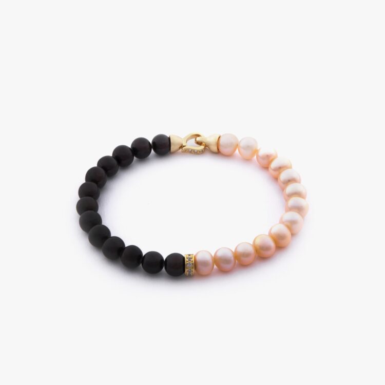 دستبند زنانه مروارید با ورق طلا و سنگ سری دریا