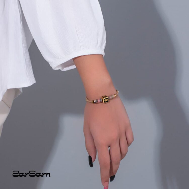 دستبند زنانه دی با ورق طلا و سنگ سری صنم