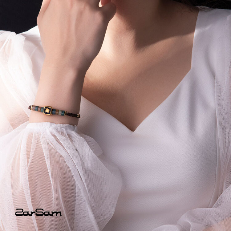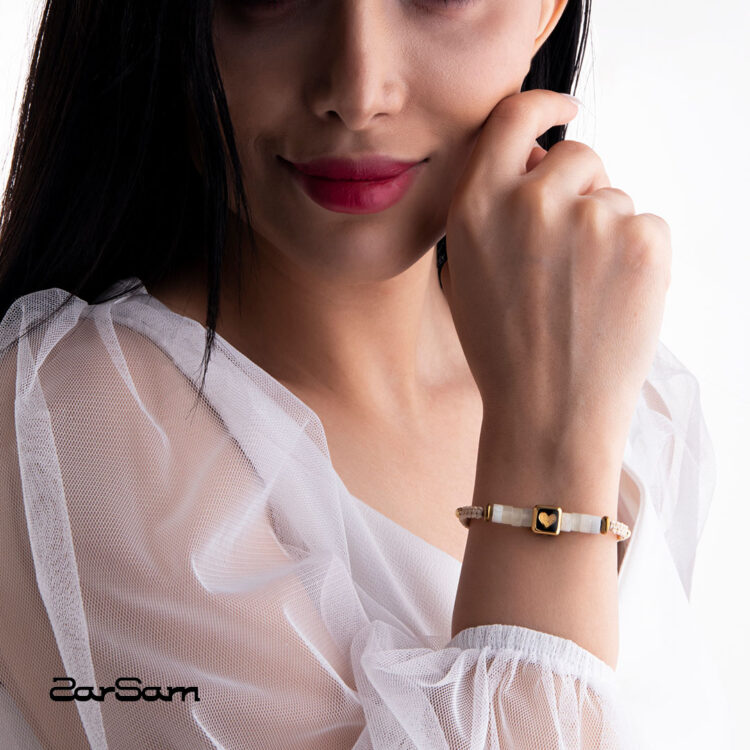 دستبند زنانه آبان با ورق طلا و سنگ سری صنم