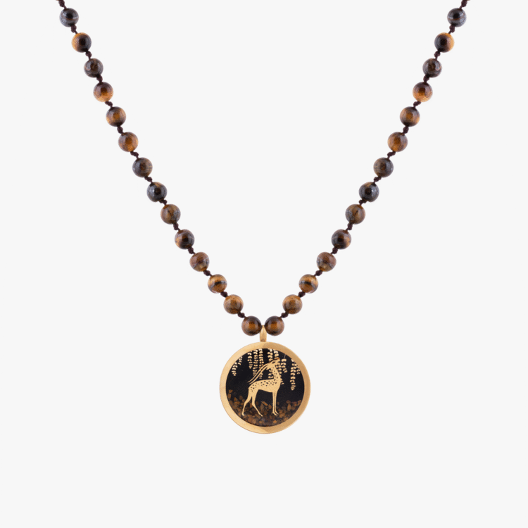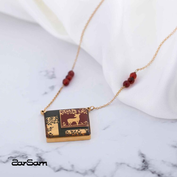 گردنبند زنانه غزال با ورق طلا و سنگ سری لاکت
