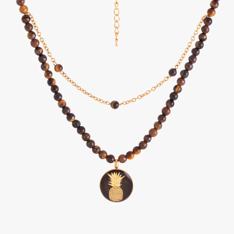 گردنبند زنانه آناناس با ورق طلا و سنگ سری مانی کلاسیک