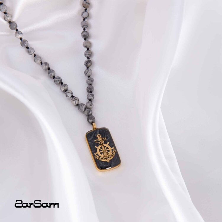 گردنبند مردانه لنگر با ورق طلا و سنگ سری ایستا