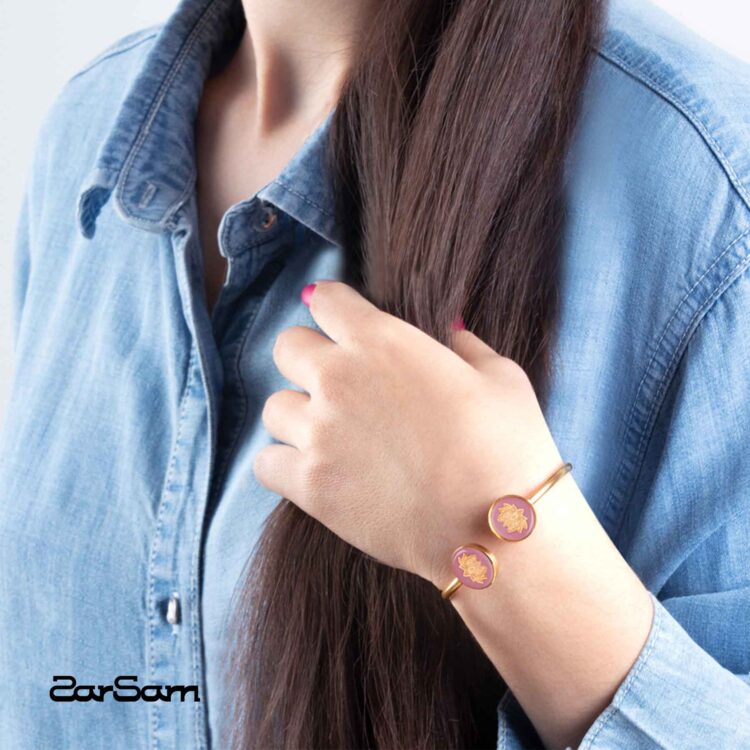 دستبند بنگل زنانه نیلوفر V2 با ورق طلا سری مهرسا