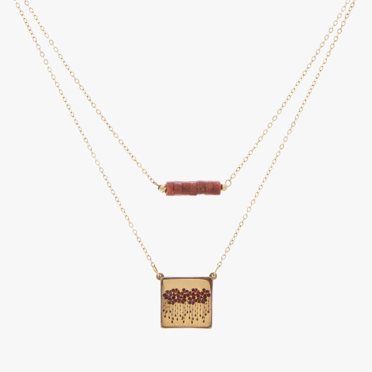 گردنبند زنانه آلاله با ورق طلا و زنجیر سری یزدان