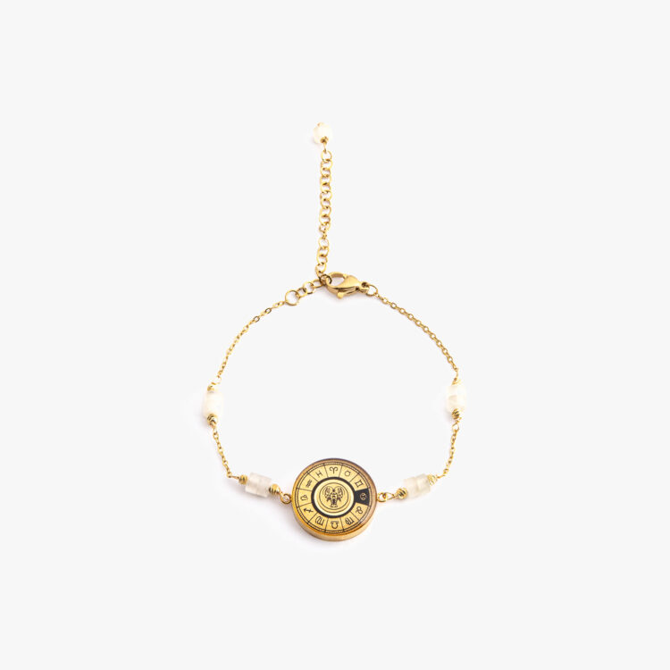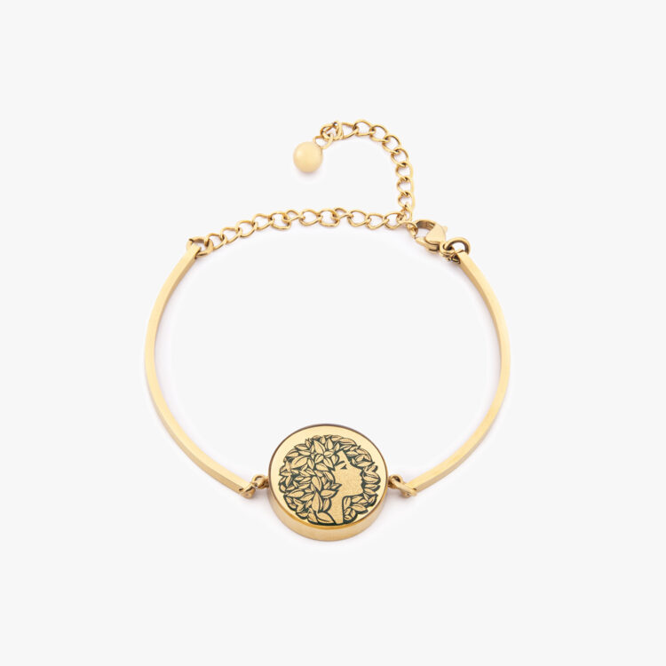 دستبند زنانه مرداد با ورق طلا و زنجیر سری مانیمو