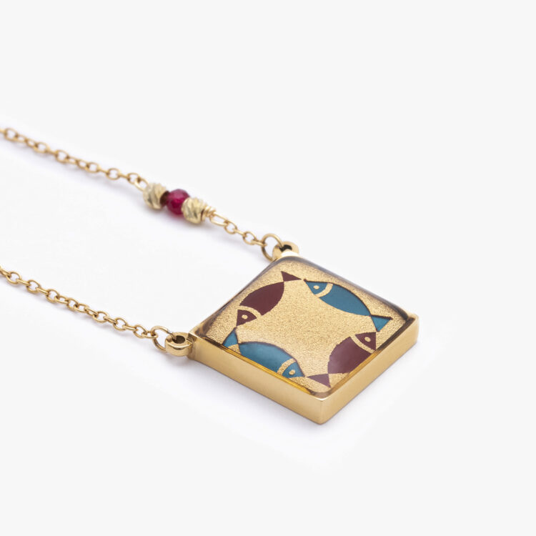 گردنبند زنانه ماهیک با ورق طلا و زنجیر سری یزدان
