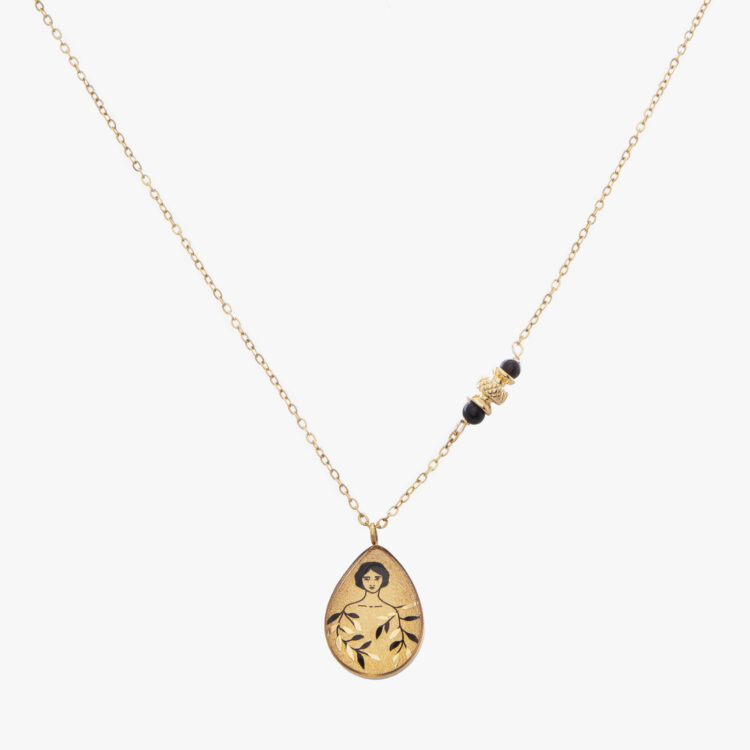 گردنبند زنانه بامشی با ورق طلا و زنجیر سری یزدان